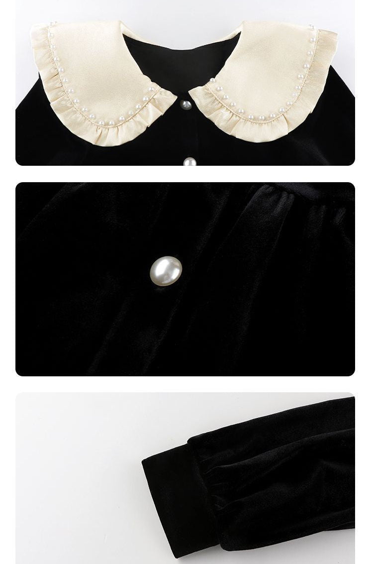 【1/25まで!入学式フォーマル10%OFF対象商品】ベルベット丸襟パールワンピース02788