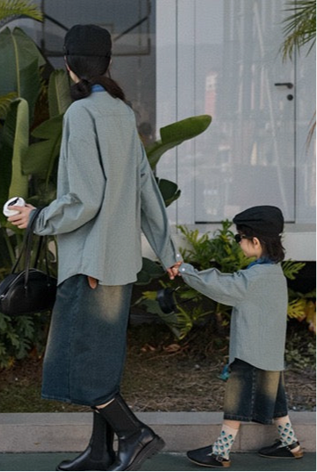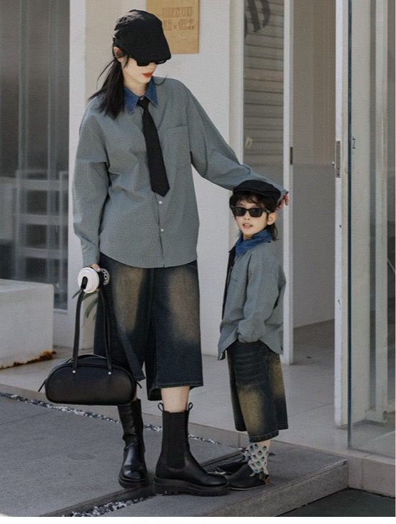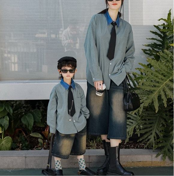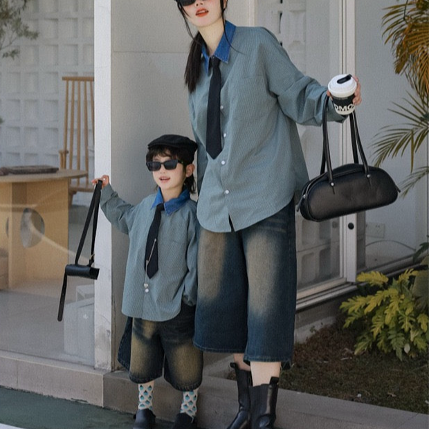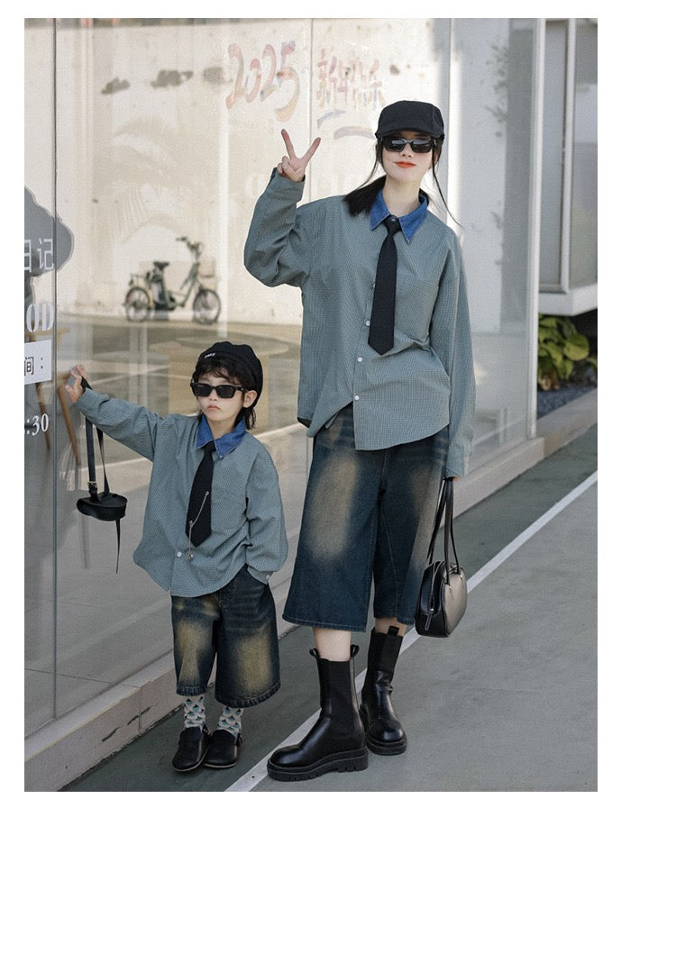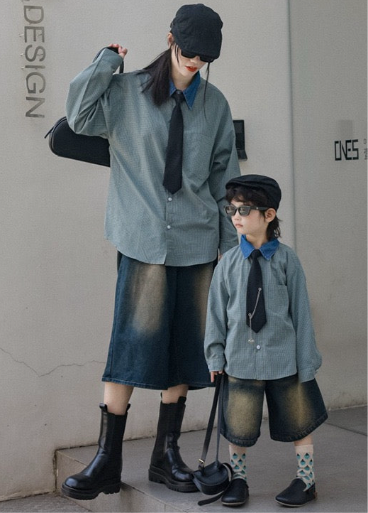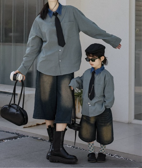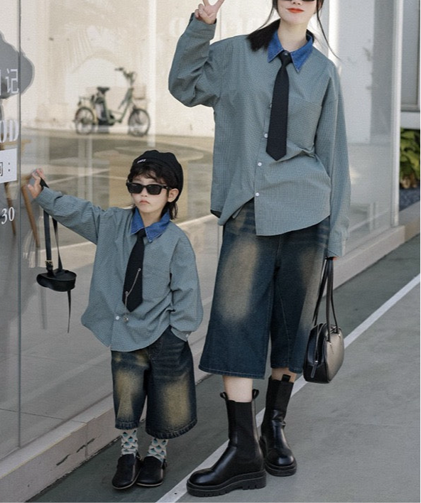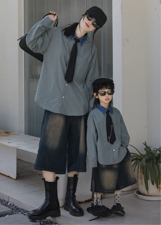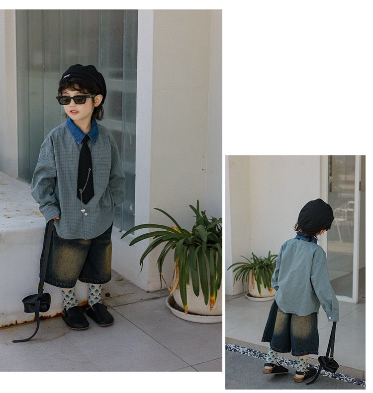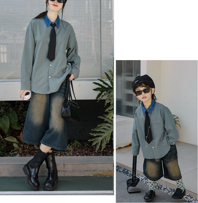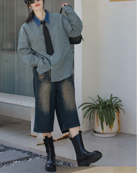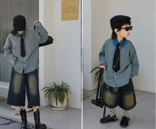 タイ付きバイカラーワイドシャツ&デニムボトムス02738