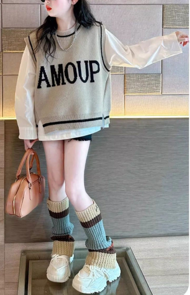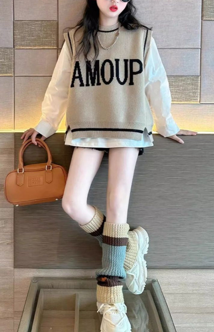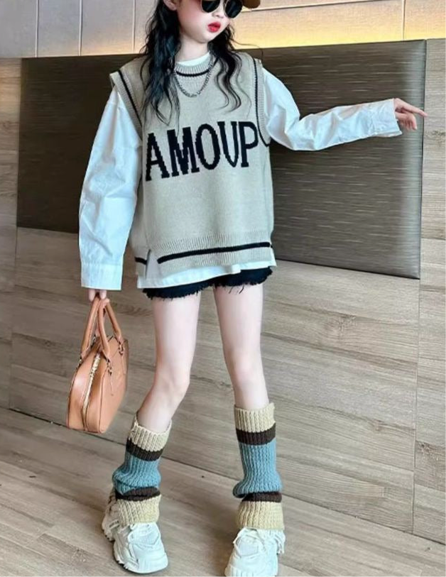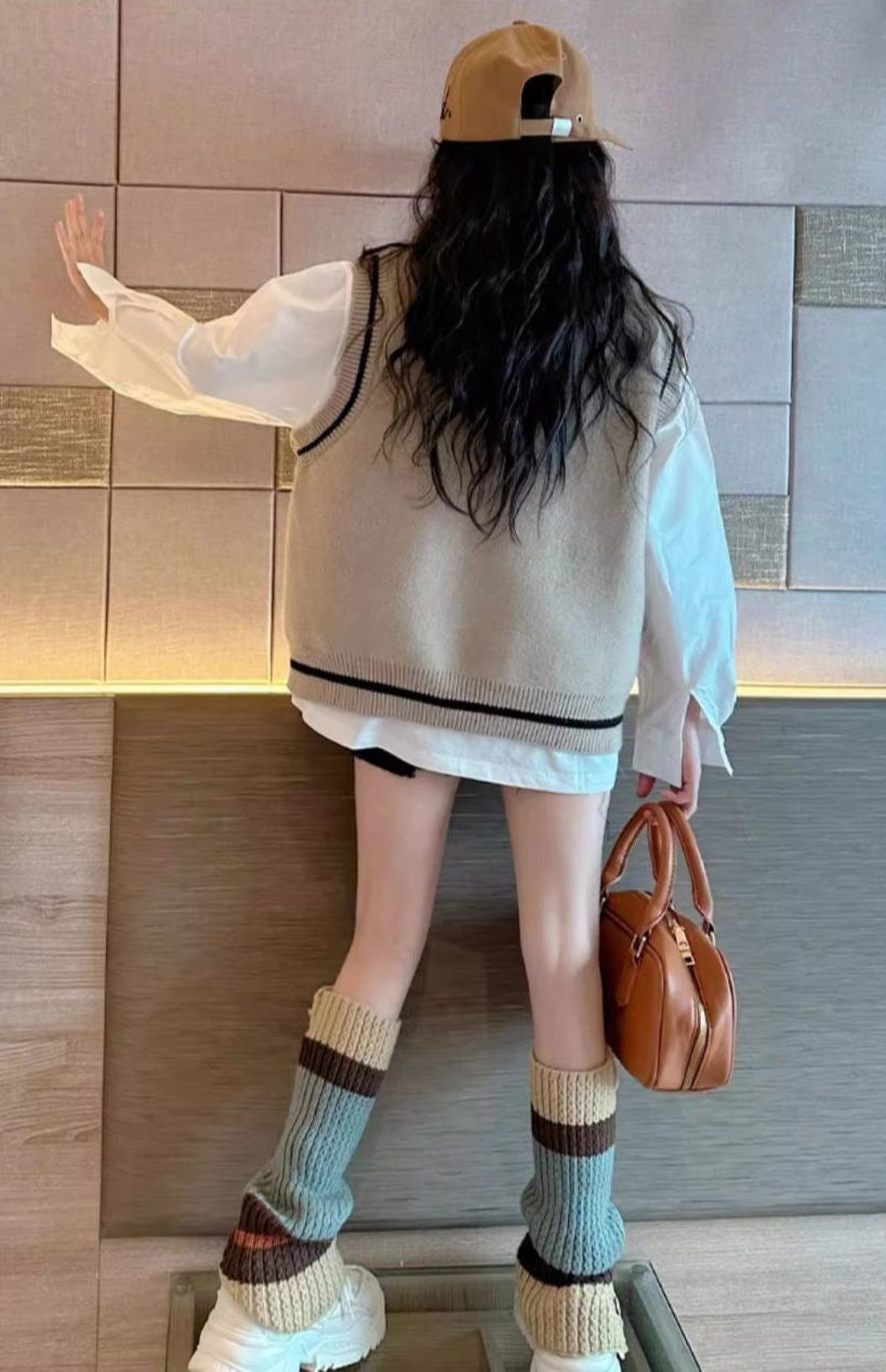 【スタイル】ニットと白の長袖シャツの2点セット