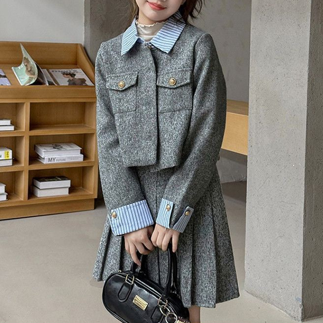 【1/25まで!入学式フォーマル10%OFF対象商品】ストライプ襟付きフォーマルセットアップ02795