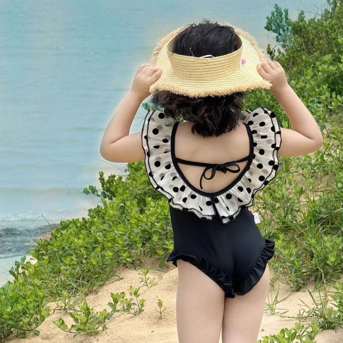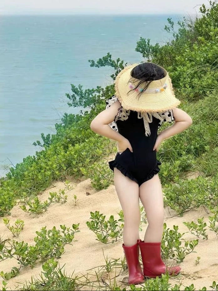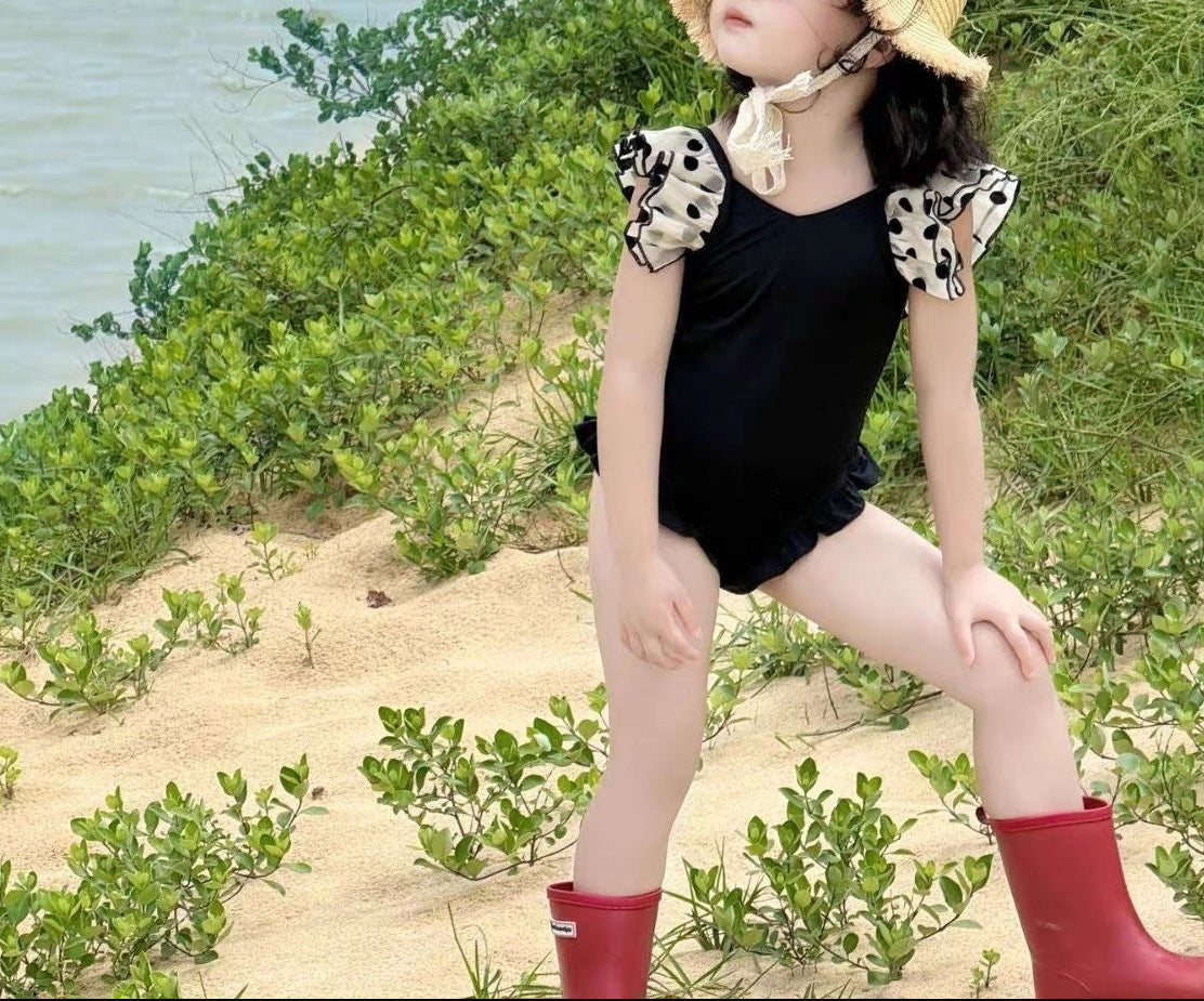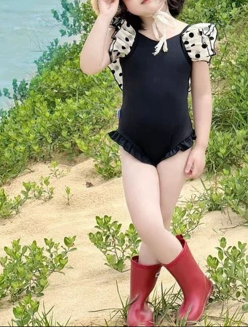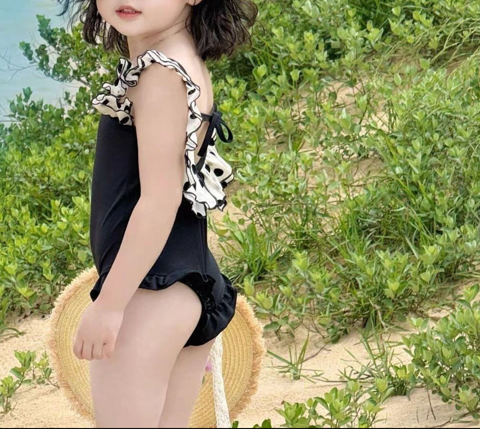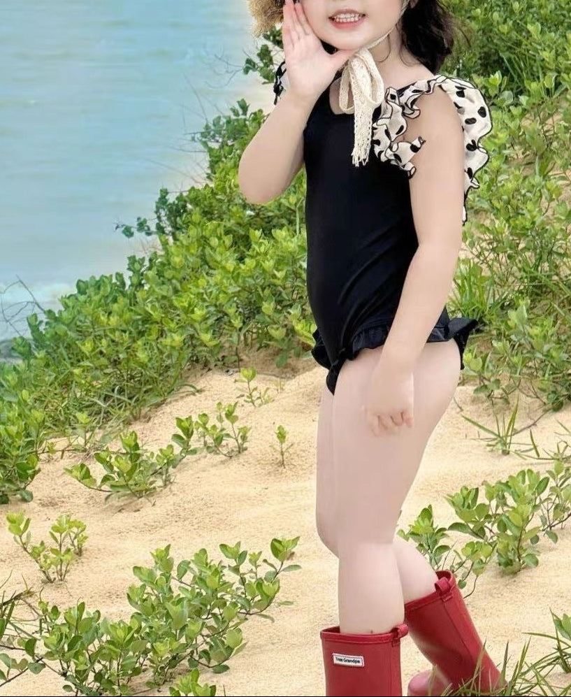 【新作早割4/28まで】【数量限定キャップ付】バックリボンドットフリルスイムウェア02845