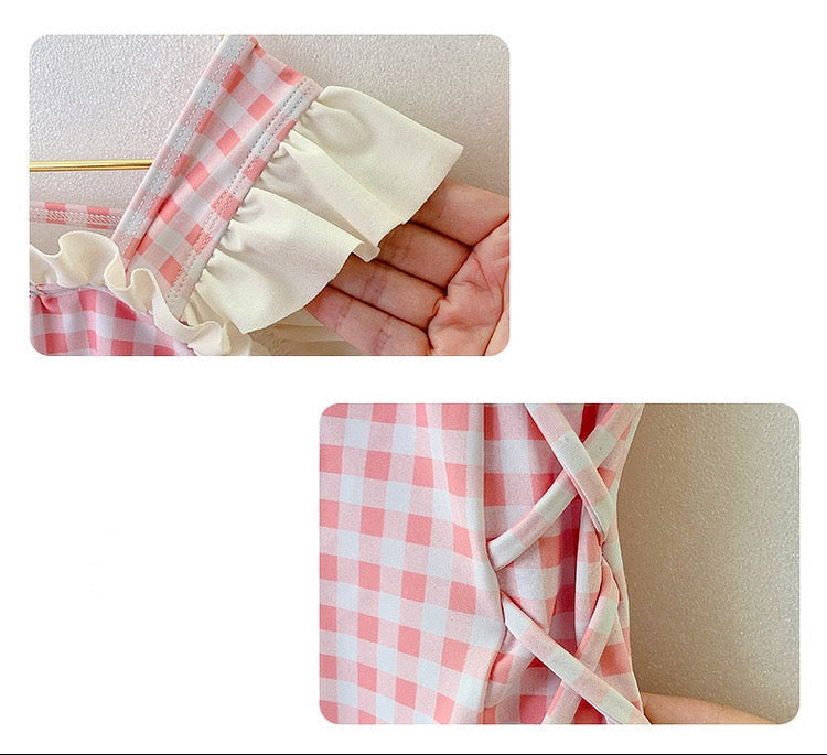【新作早割5/12まで】ギンガムチェックレース水着02847